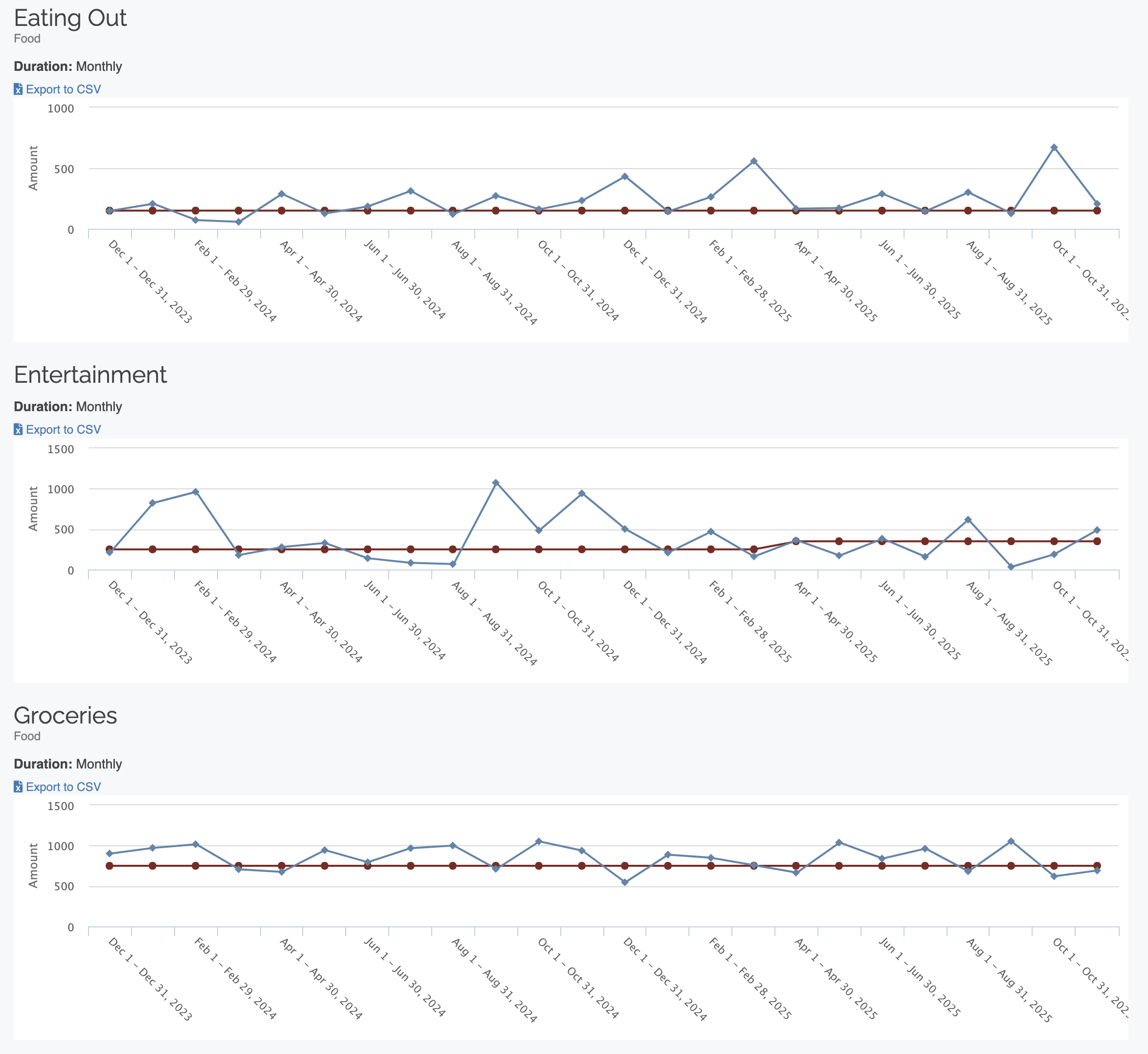 Export budgets and budget history to CSV file |