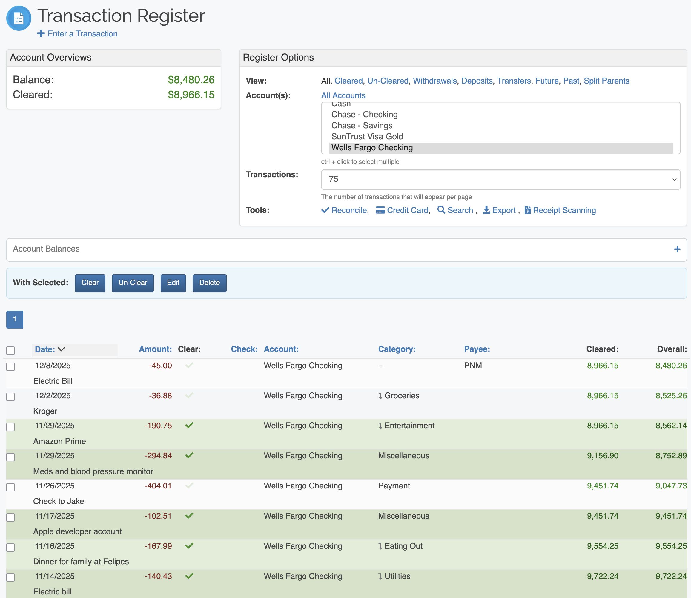 Lock cleared transactions from being edited or deleted |